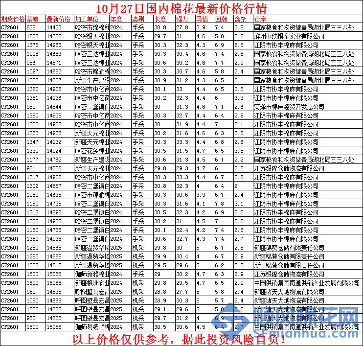 10月27日国内棉花价格行情