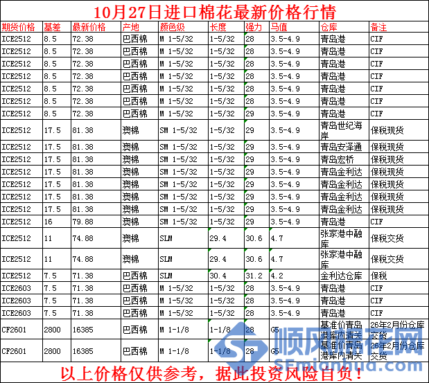 评论:0    核心提示:10月27日进口棉花最新价格行情