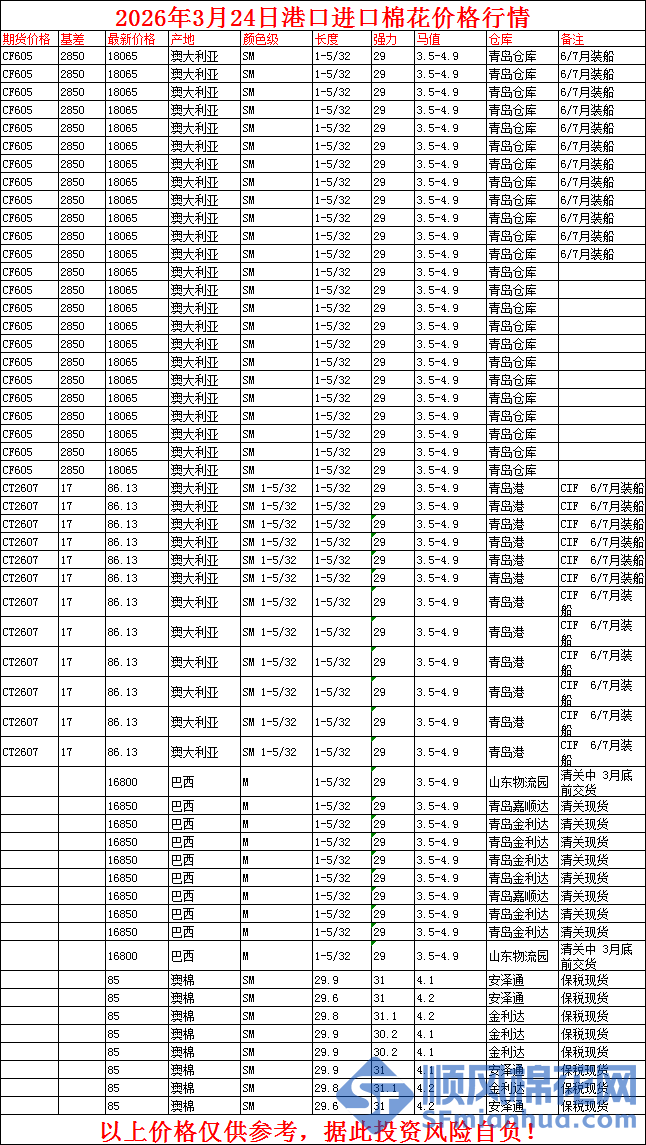 • 3月17日港口棉花价格行情
